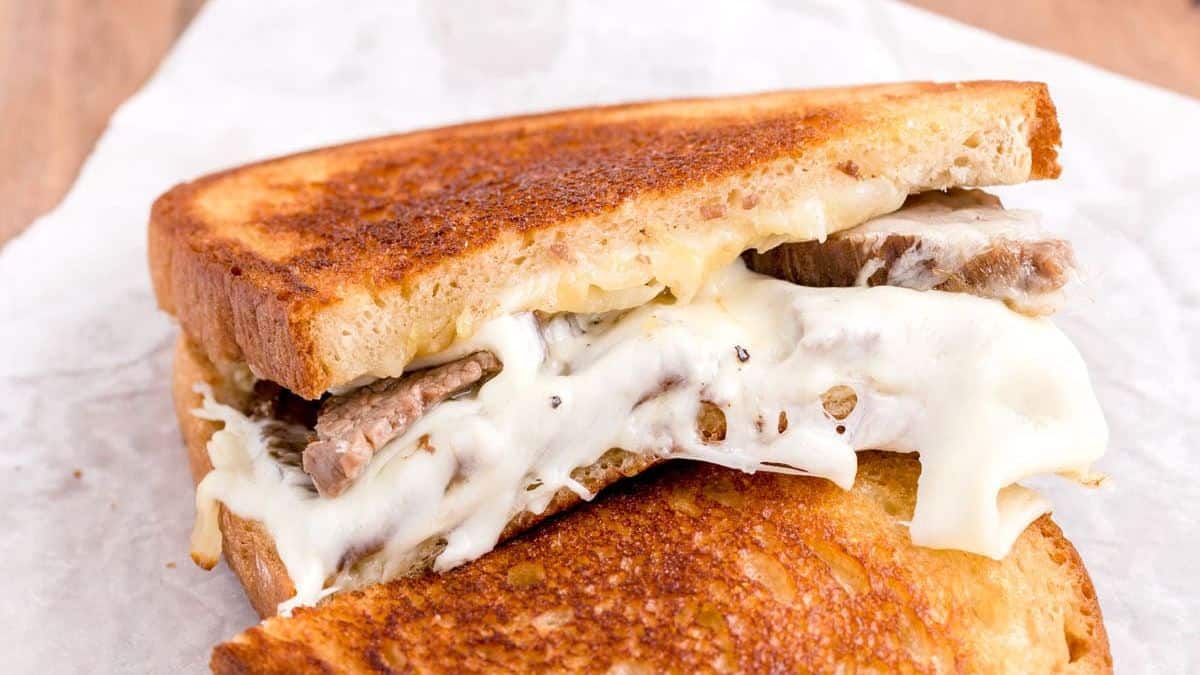 This grown-up grilled cheese combines grilled onions, cheese and tender slices of steak. This sandwich is perfect for dinner or lunch.
