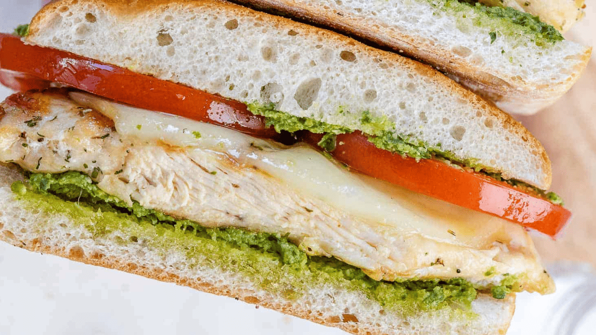 No need for Starbucks when you can make a Caprese Grilled Chicken Sandwich at home! Loaded with pesto, creamy mozzarella, sliced tomatoes, and grilled chicken, this easy healthy sandwich recipe is perfect for lunch or dinner!