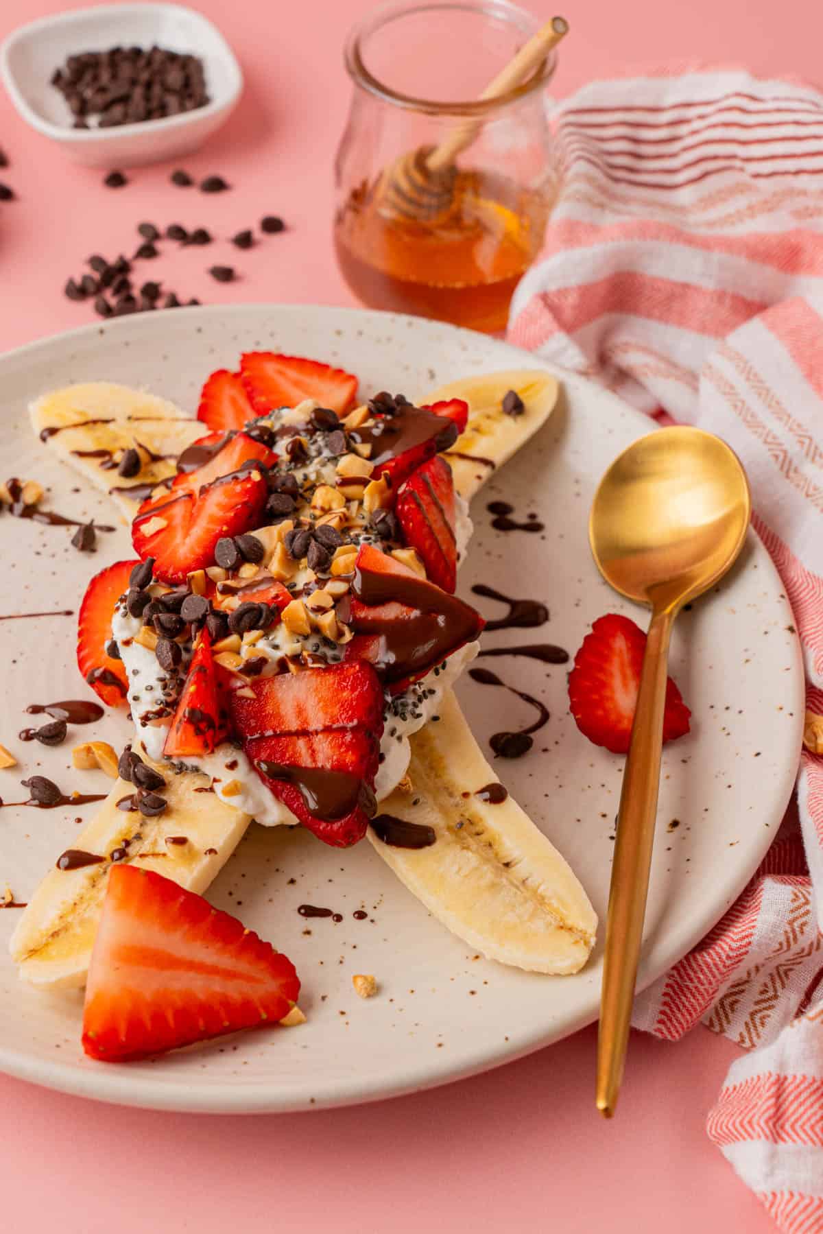 Banana - The base of this banana split healthy recipe. Naturally sweet and rich in potassium.