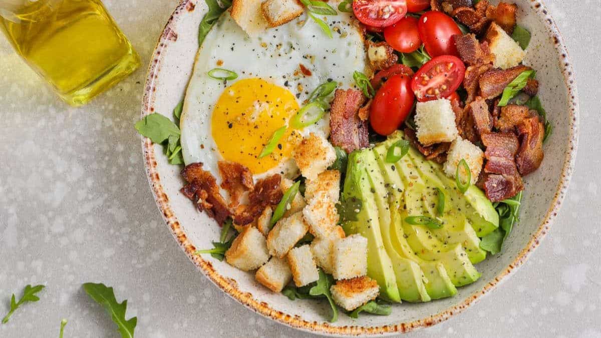 Packed with fresh veggies, greens, and a protein-packed combo of bacon and eggs, this Breakfast Salad is the perfect customizable dish for your next breakfast dish!