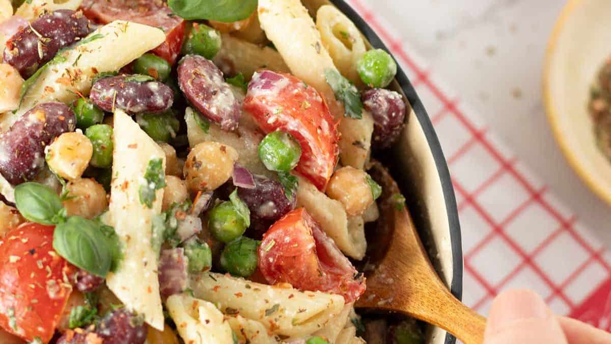 Get the recipe: Cold High Protein Vegan Pasta Salad