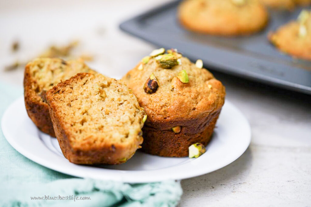 If you try this recipe for Healthy Pistachio Muffins, let me know what you think! Leave a comment below, and don’t forget to snap a pic and tag it #bluesbestlife on Instagram! Seeing your creations makes my day.