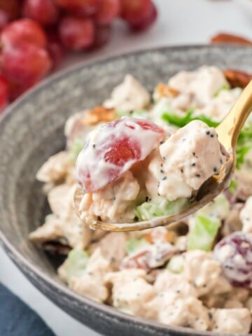 This salad was first introduced back in 1896 at the famous Waldorf-Astoria Hotel in New York City. The salad soon became a huge hit and has become the American classic known as a Waldorf Salad. Generally, a Waldorf salad consists of fruit and nut ingredients that are bound together with a mayonnaise-based dressing. In this version we are making it a bit lighter by using Greek yogurt instead of the traditional mayonnaise dressing.