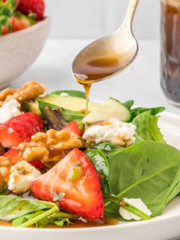 - chicken and bacon - You could add some cooked rotisserie chicken and bacon to this salad. The lean protein works well with the ingredients and the salty bacon balances with the sweet flavors.