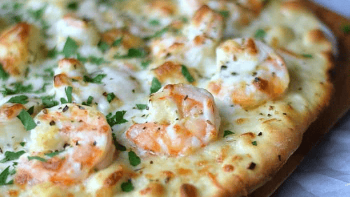 Indulge in the Indian flavors of butter chicken on a delicious naan bread. The flavor of garlic and creamy chicken works so well in this way. A unique pizza option.