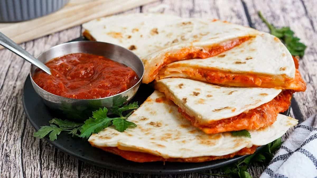 These easy pizza quesadillas are made with just 4 ingredients and are a kid friendly lunch, dinner or snack. It is easy enough to get the little ones to help put this recipe together.