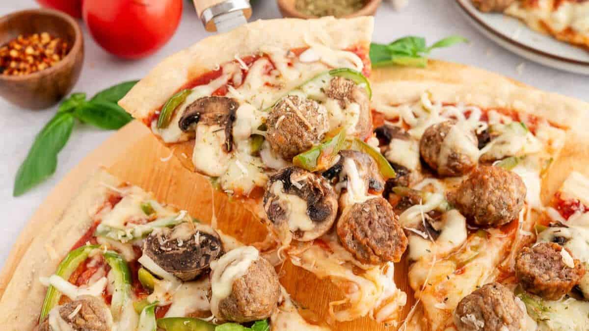 This Italian Meatball Pizza recipe is a perfect quick dinner. You can use homemade Italian meatballs or use frozen store bought meatballs to make this recipe even easier.