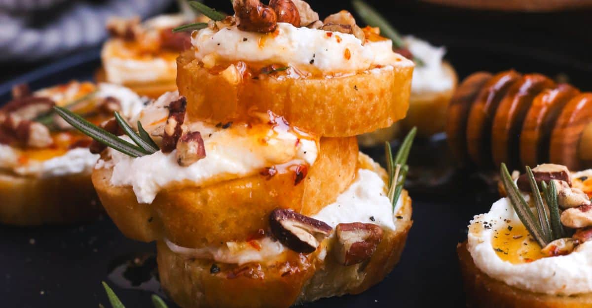 Whipped Feta Crostinis With Hot Honey and Pecans