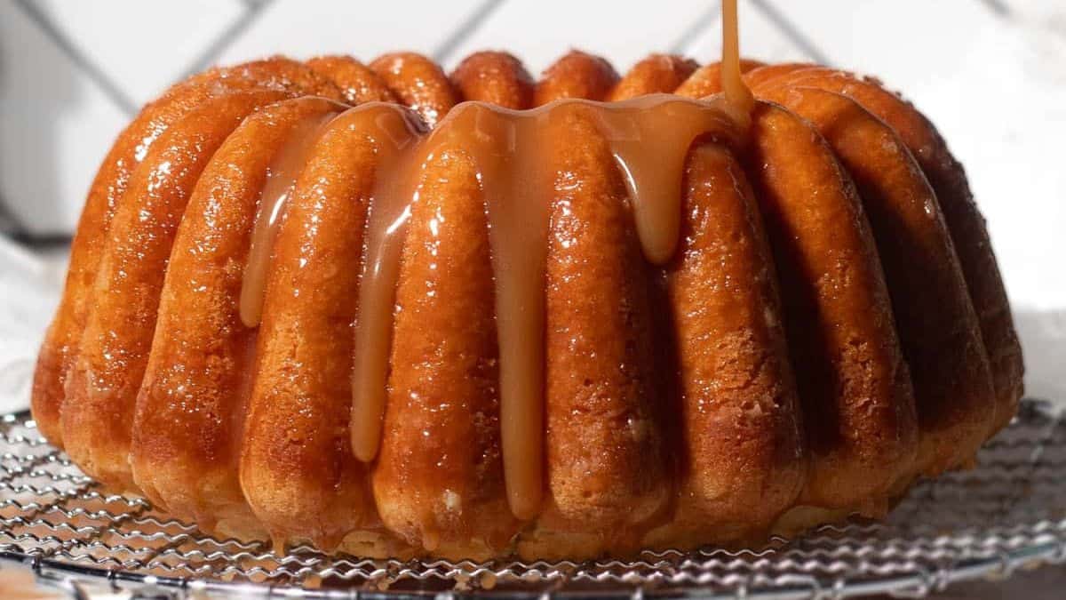 This buttery pound cake is topped with a salty caramel glaze. This is the most delicious Kentucky Butter Cake recipe, perfect for a Derby party.