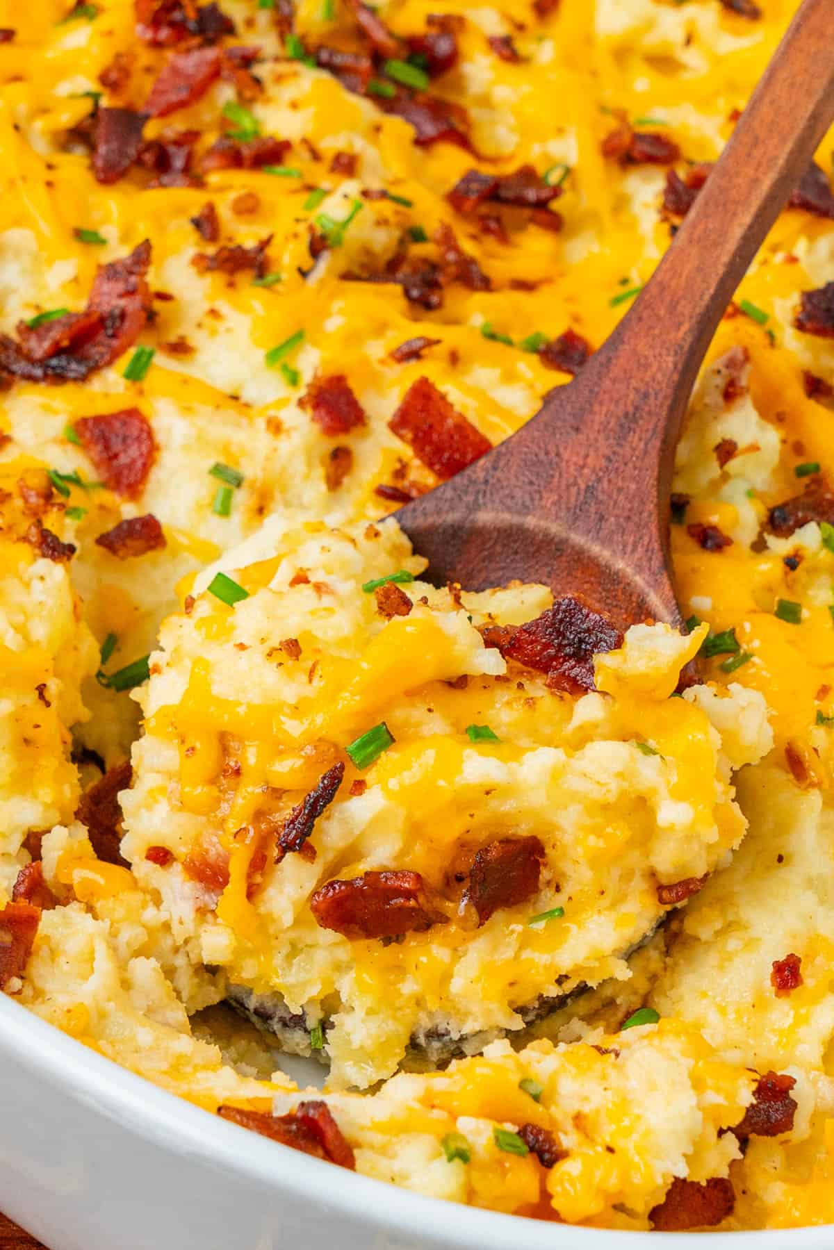 Bacon - It adds a savory and smoky crunch that makes this loaded mashed potato casserole easy and irresistible.