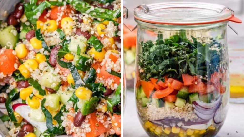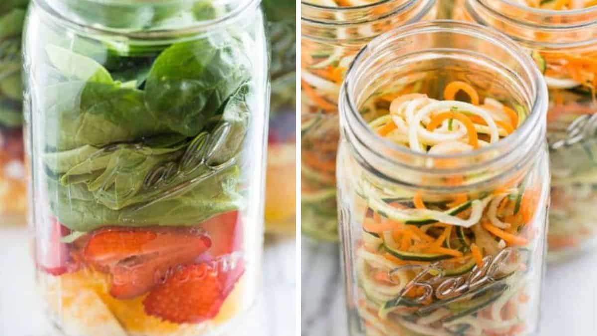 When you need a healthy lunch you can meal prep for the week, try this collection of mason jar lunch ideas! You can make delicious salads with plenty of fresh ingredients all layered in a jar for a convenient grab-and-go lunch that is easy to make ahead.