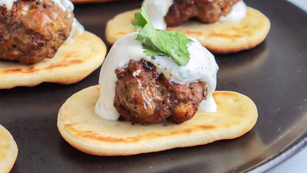 These juicy meatballs are made with lamb and served with tzatziki sauce and mini pita bread. Wow your guests with this amazing meatball recipe.