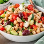 I love this Greek-inspired bean salad because it satisfies my craving for Mediterranean flavors with a nutritious and filling dish while also saving me time because I can easily prep ahead for the week.