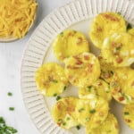 I found mine needed longer than 10 minutes in a 350 oven. They were not even close to being set. I realize all ovens are different, but I was rushing to send these on an early morning carpool for my son’s hockey game. Left in for another 7 minutes. That said, they were easy and delicious! I added a little chopped breakfast sausage and sautéed onions. I also didn’t have sour cream so I used heavy cream instead. Left everything else as written. Will make again in batches to have on hand for a quick bite before school.