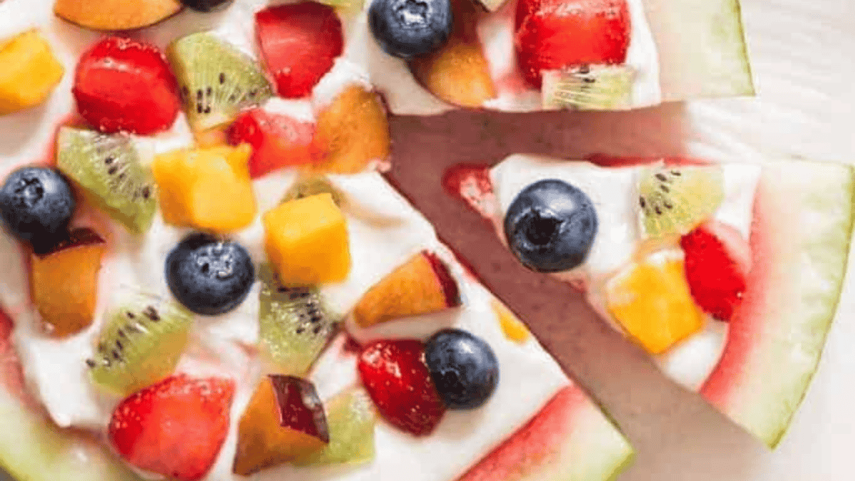 This Watermelon pizza is thick melon slice that is topped with a cheesecake frosting and fresh fruits. A sweet and refreshing snack the whole family will love.