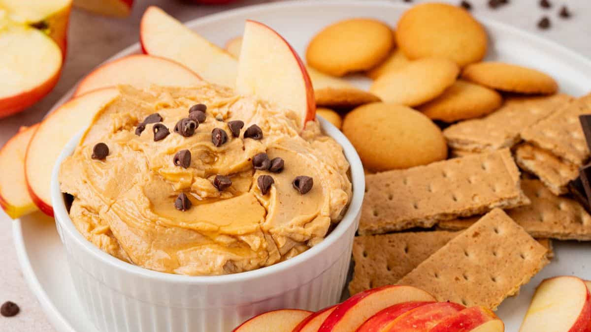 This creamy peanut butter dip is a healthy snack made with Greek yogurt and honey. It is easy to make and can be made ahead for a snack everyone will love.
