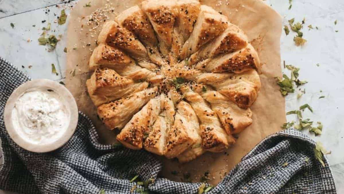 This Everything but the Bagel Sun Tart is a super simple recipe that takes just 25 minutes to make. Balanced with flavor and buttery it is a great appetizer option for your next gathering.
