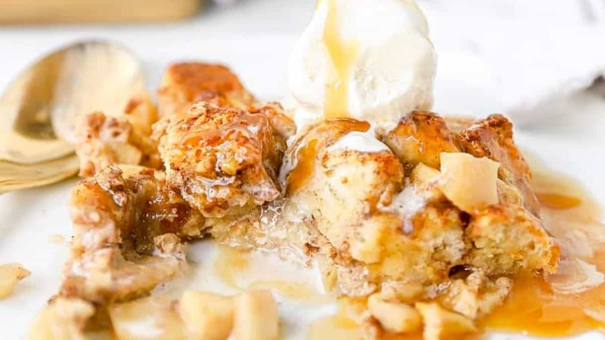 Leftover biscuits? Make biscuit bread budding! Loaded with apples and cinnamon then top with some ice cream for a delicious way to use biscuits that isn’t breakfast!