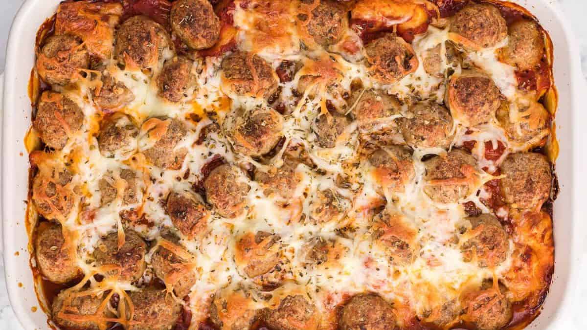 This family dinner casserole is made quick and easy with refrigerated canned biscuits. Loaded with meatballs, cheese and sauce this is one casserole everyone will love.