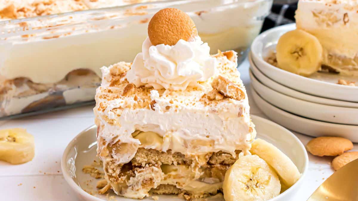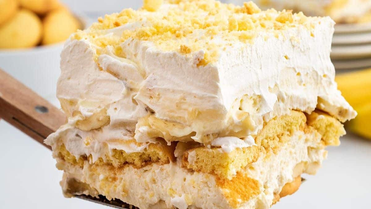 This banana delight is a slight twist on the classic banana pudding. It has a creamy texture of a banana cream pie while made lasagna style with lots of layers.