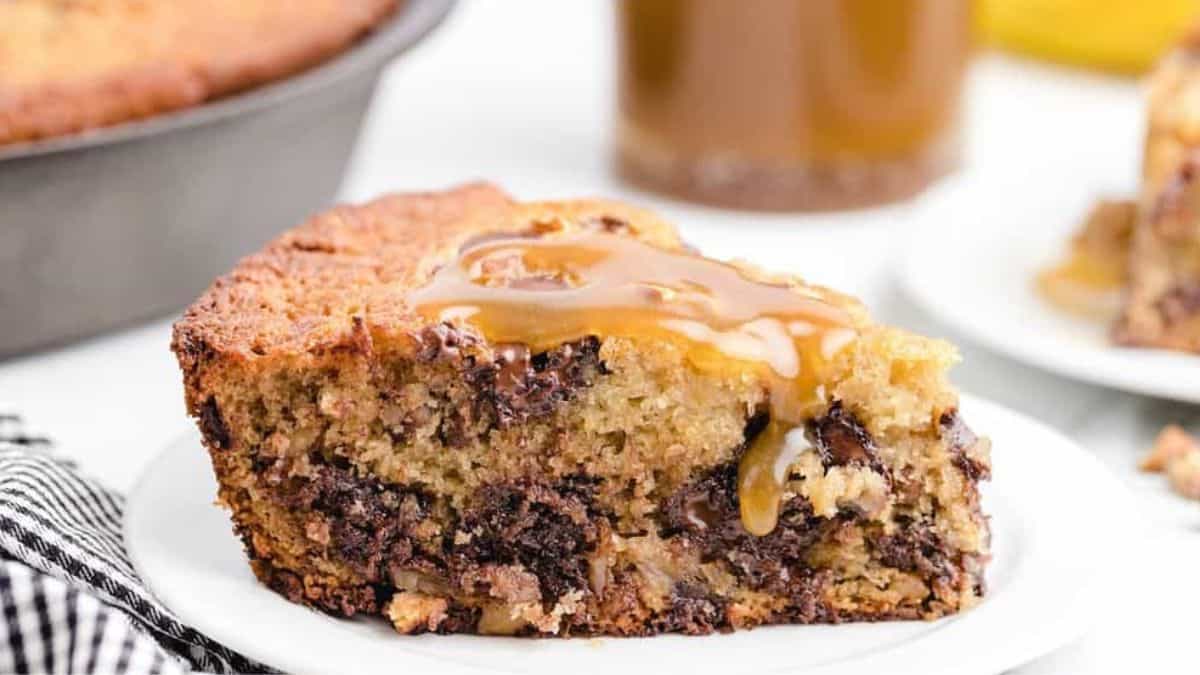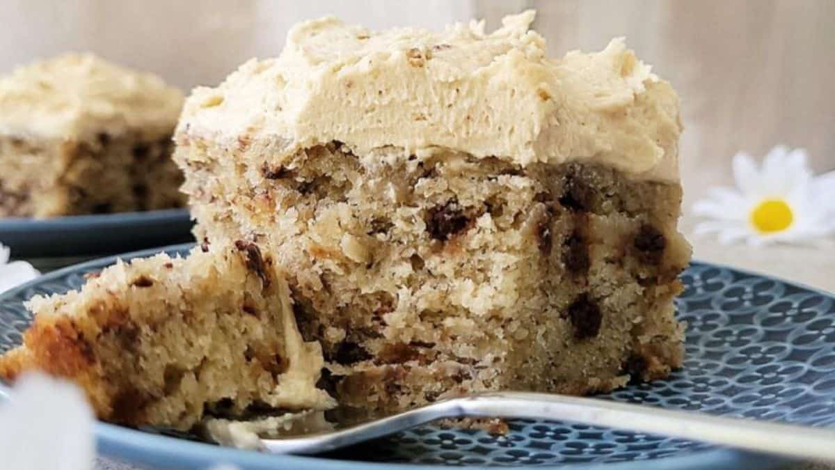 Do not throw away the overripe bananas when you can make this delicious chocolate chip banana cake at home. The brown butter combines with sour cream and bananas to create a moist, tender, and delicious cake. It is the perfect way to use the ripe bananas.