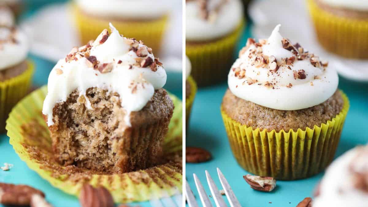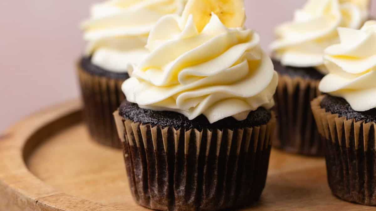 These moist and chocolatey treats are bursting with fresh banana flavor and topped with a silky smooth banana buttercream frosting. They're lighter than air and just as delicious as your favorite banana bread or muffins.