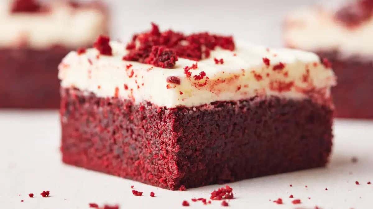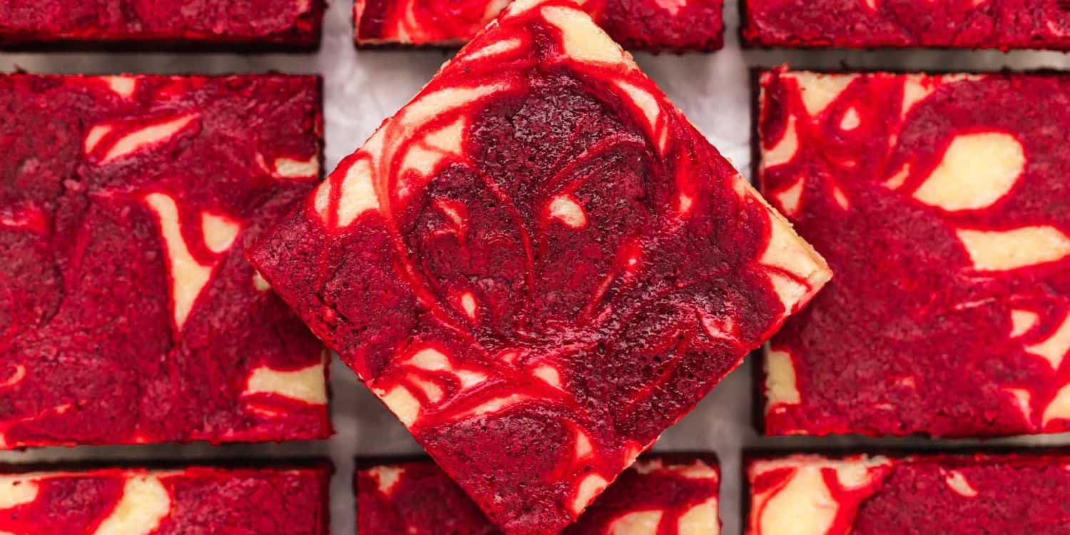 These Red Velvet Brownies are the perfect combination of fudgy brownies and red velvet cake. With a striking red crumb and a thick layer of luxurious cream cheese frosting on top, they are a delicious anytime treat.