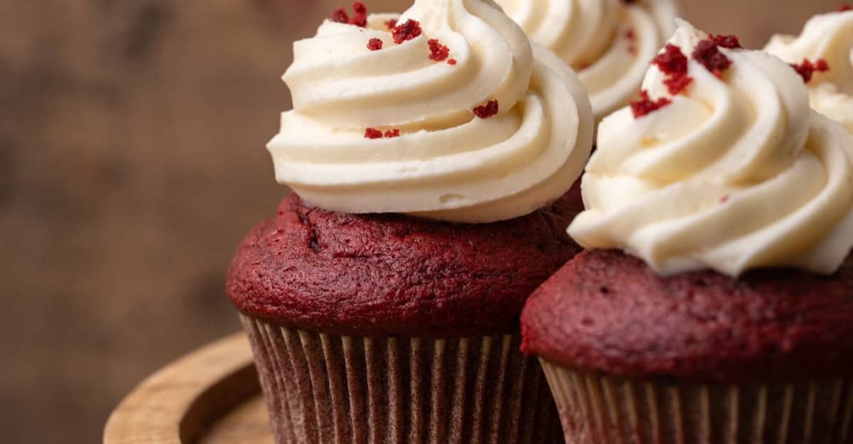 Cupcakes are best eaten fresh and this recipe creates a small batch of delicious red velvet cupcakes with a tangy-chocolatey flavor. The full-fat cream cheese frosting applied on these cupcakes makes them moist and decadent.
