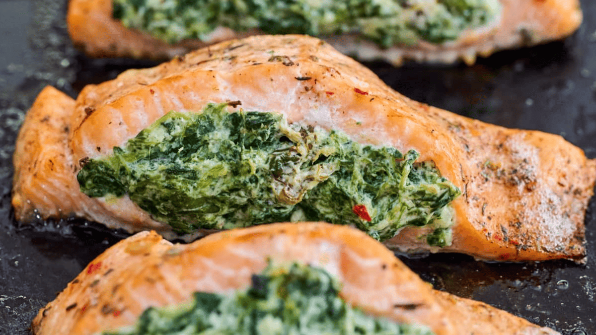 Get the recipe: Crab And Spinach Stuffed Salmon