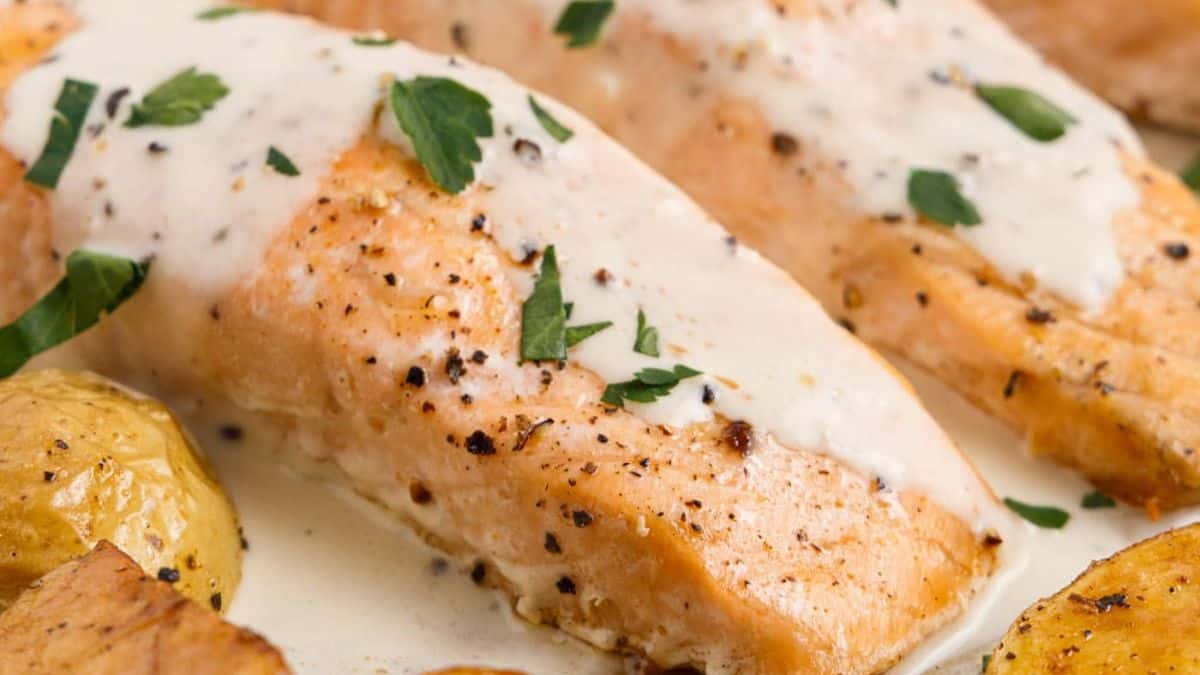 Get the recipe: Pan-Seared Salmon with Creamy Dill Sauce