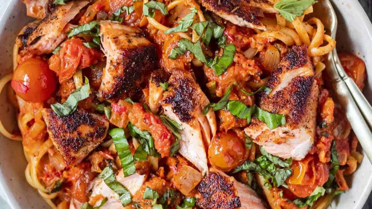 Blackened Salmon Pasta With Tomato Cream Sauce