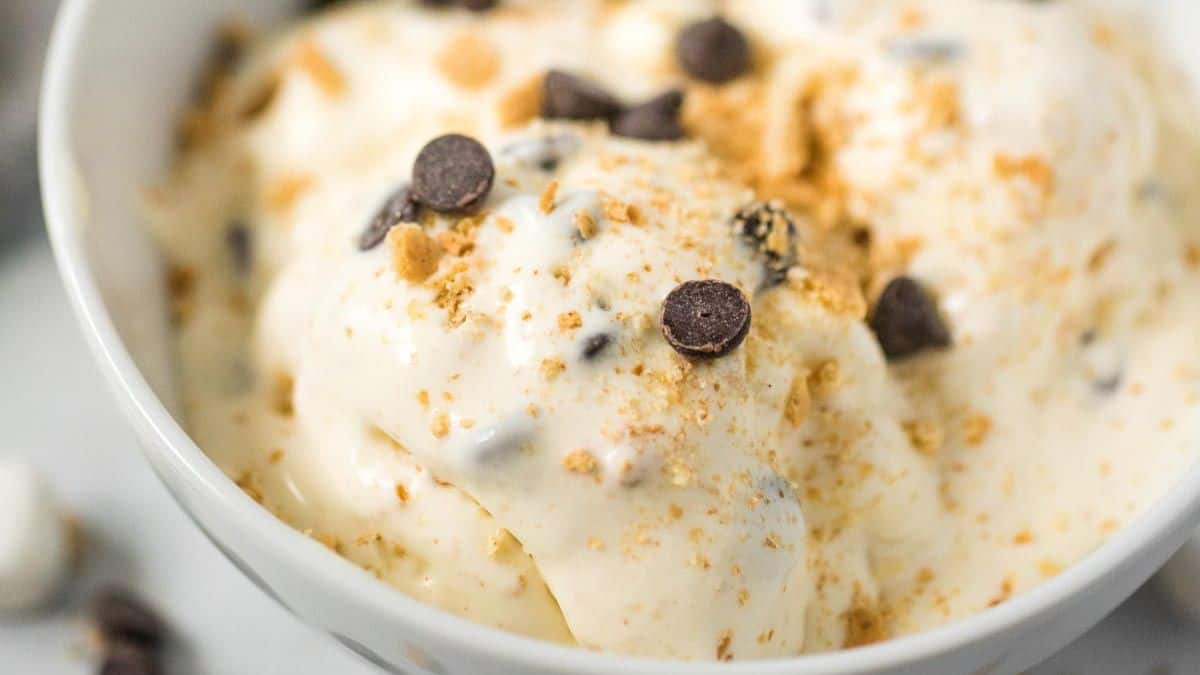Smore Ice Cream is easy to make and doesn’t require an ice cream maker. This no-churn ice cream is packed full of chocolate, marshmallows, and graham crackers to taste just like your favorite s’mores.