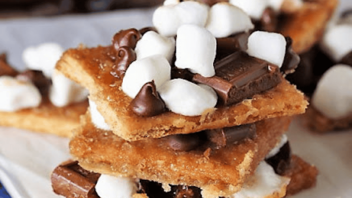 Reinvent your classic s'mores treat by introducing a graham cracker base and boxed chocolate cake mix. Add chocolate marshmallow frosting and milk chocolate to complete this reinvention.