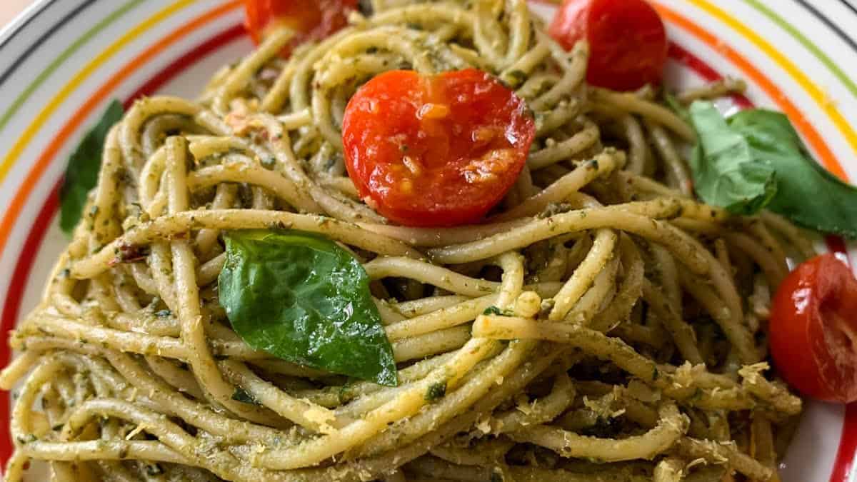 This pasta al pesto will awaken your senses and make your taste buds dance with its thick homemade basil pesto coating the pasta. The spaghetti, cooked to perfection, is like a blank canvas and absorbs the flavors so well!