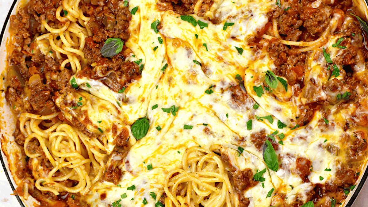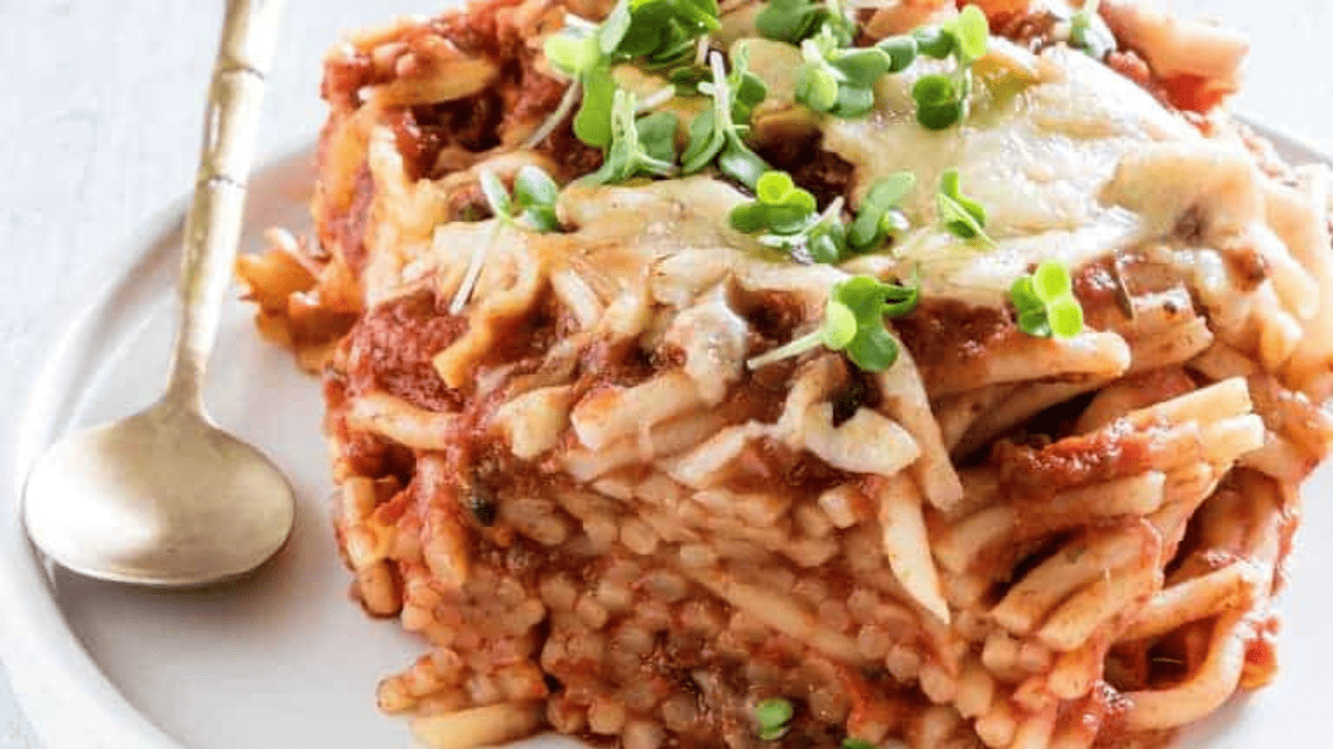 TikTok Spaghetti is a viral hit recipe where creamy, cheesy alfredo pasta meets tomato meat sauce in a casserole that's hard to resist!