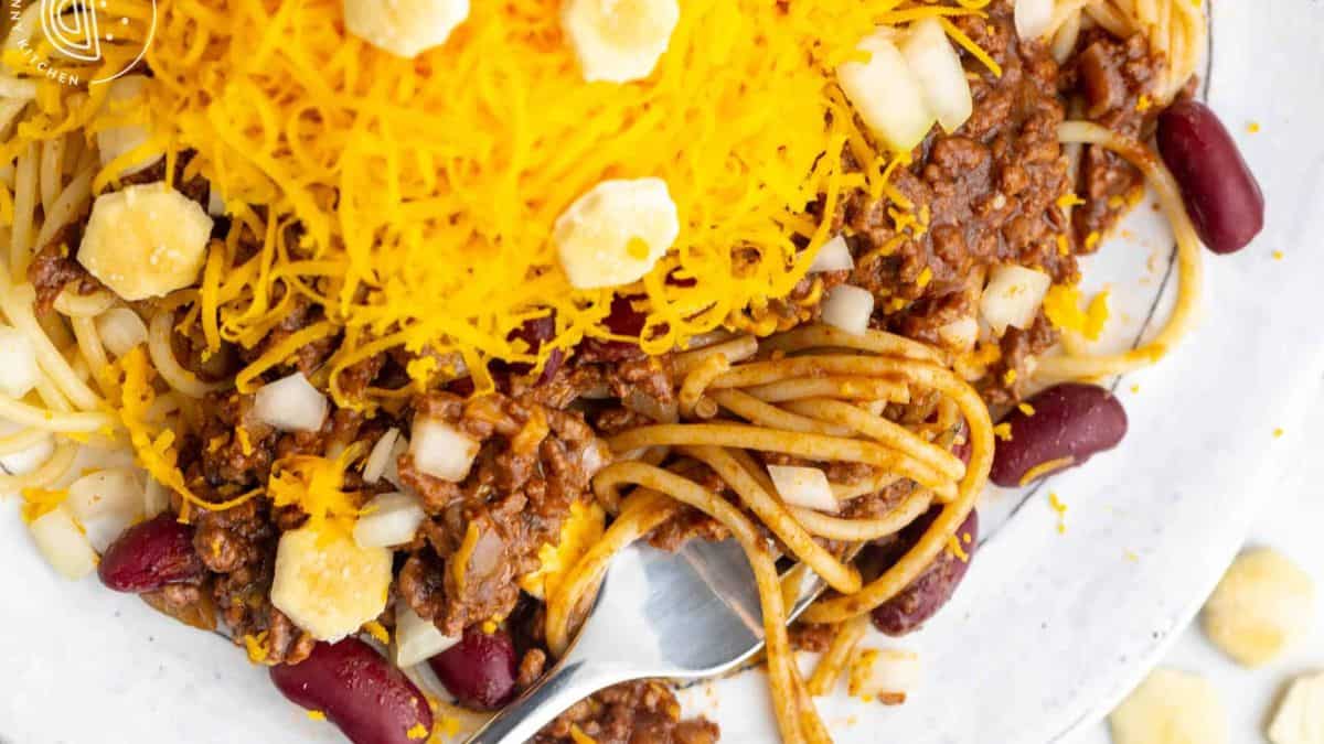 This famous chili recipe is from Skyline Chili in Cincinati. It may seem a little non-traditional but is a delicious savory chili that is served on top of spaghetti and garnished with onions cheese.