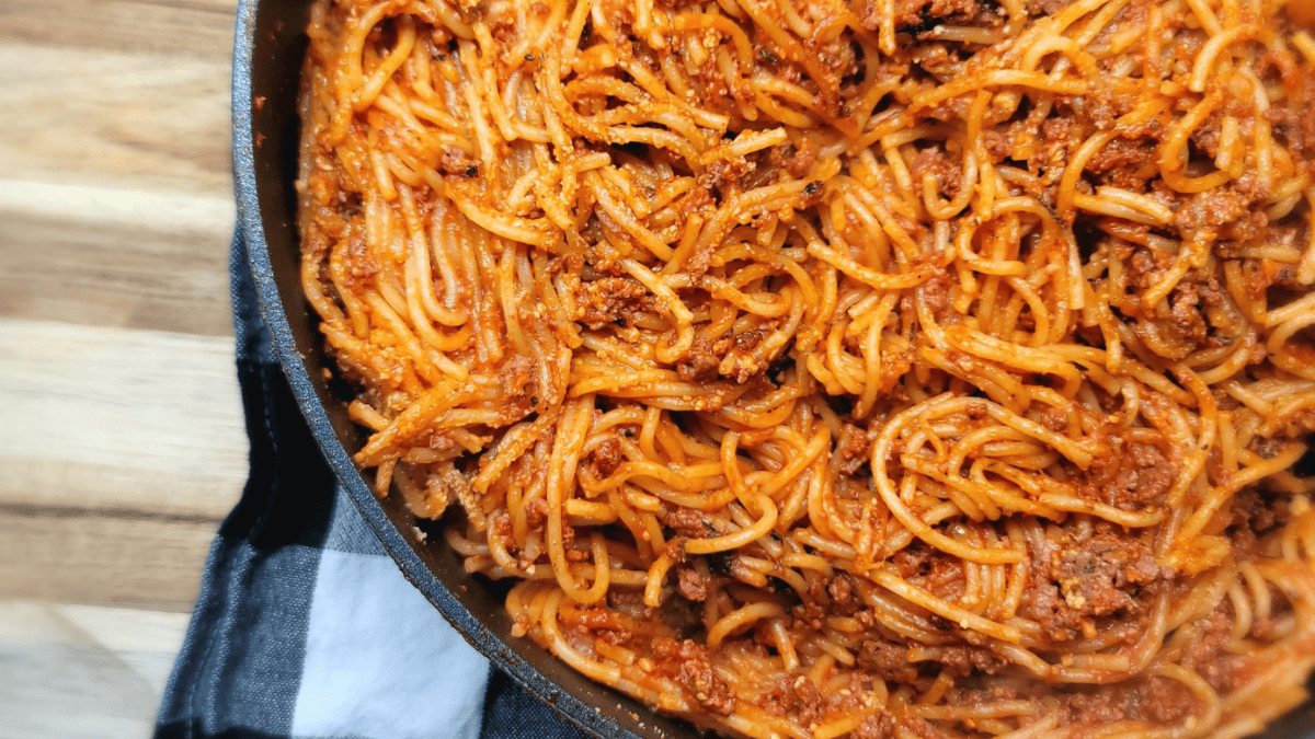 One-pot pasta recipes are a game changer if you're busy. This spaghetti is a saucy, meaty, and quick dinner idea with minimal prep and clean-up. Cooking all ingredients in one pot really brings out all the flavors in a short time, so this recipe will become your go-to weeknight meal.