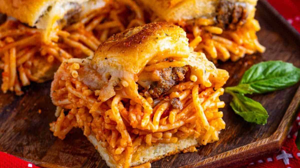 Combine two favorite dinners into one with this spaghetti meatball slider recipe. The tender meatballs and spaghetti are added to sweet Hawaiian rolls for a delicious dinner recipe the whole family will love.