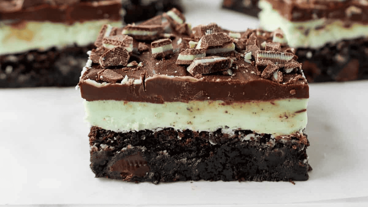 Easy chocolate brownies topped with creamy mint filling and chocolate ganache. The perfect mint chocolate brownie recipe!