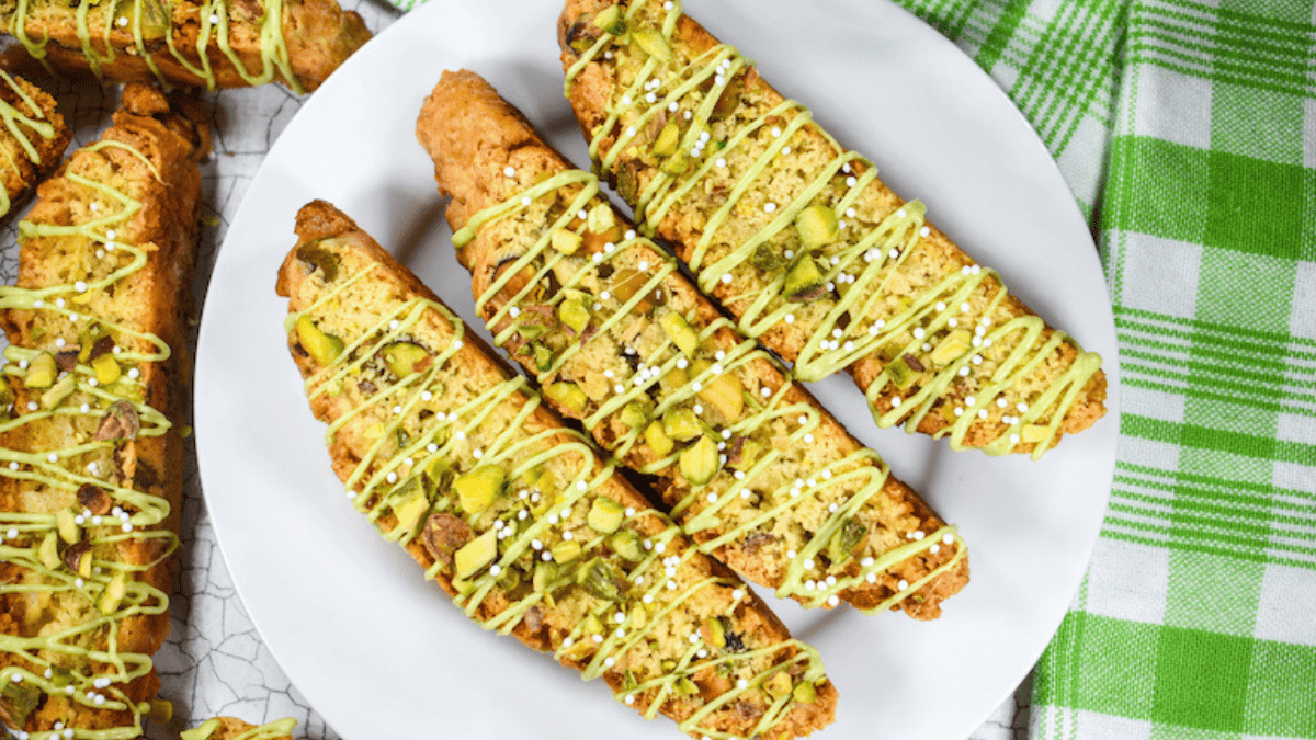 Made with crunchy pistachios and a dash of pistachio flavoring, plus even more pistachios and white chocolate on top, this biscotti recipe is a pistachio lover’s dream.