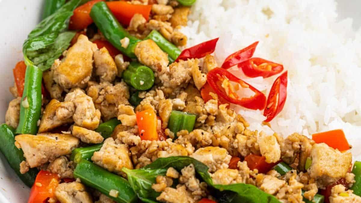Thai basil tofu pad kra pow is a Thai dish featuring firm ground tofu stir-fried with aromatic Thai basil leaves, chili peppers, garlic, and other flavorful ingredients. Ready in less than 15 minutes!