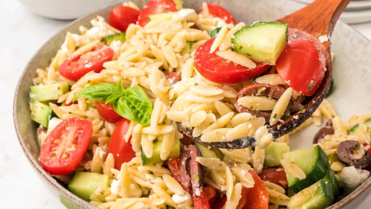 Get the recipe: Easy Pesto Orzo Pasta Salad