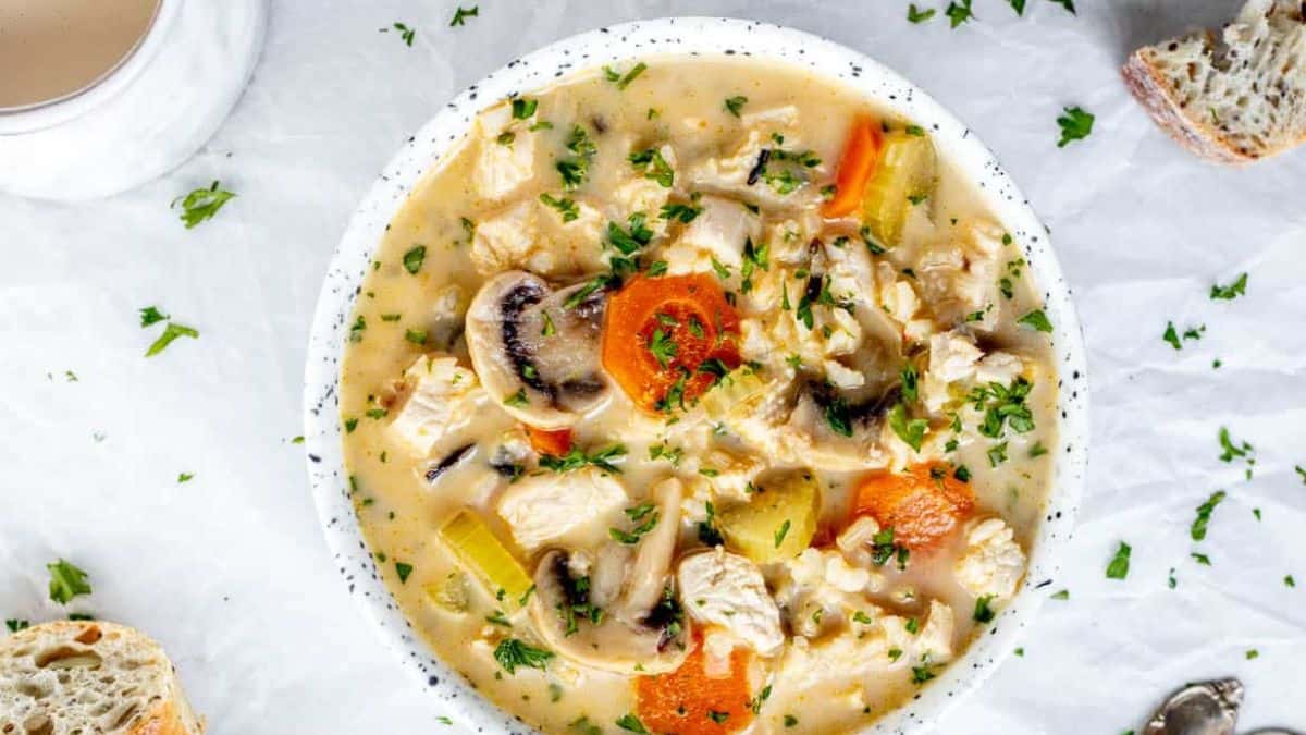 This Leftover Thanksgiving Turkey Soup with Rice with rice is a creamy, comfort food recipe perfect for using up those Thanksgiving dinner leftovers! Made with turkey, plenty of veggies, rice, and creamy broth. Yum!