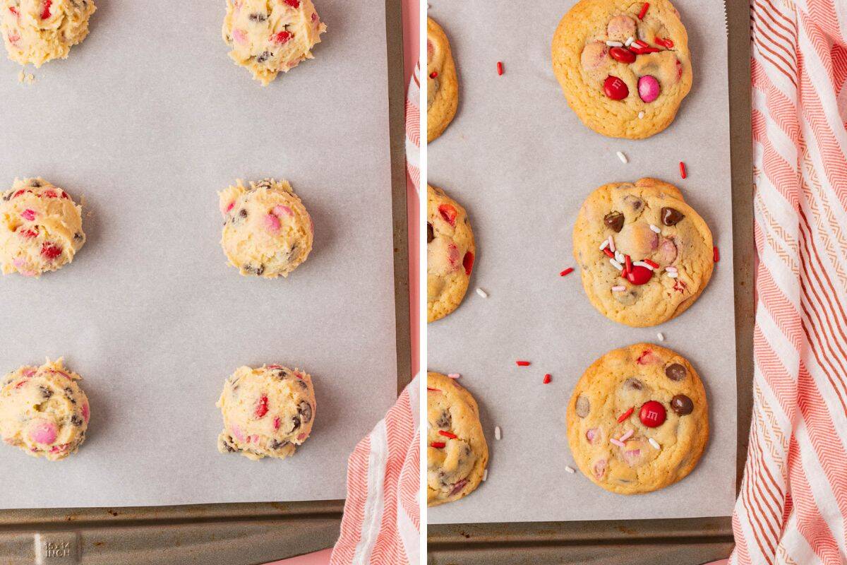 - For picture-perfect Valentine cookies decorated with extra color, press additional M&Ms on top before or immediately after baking.