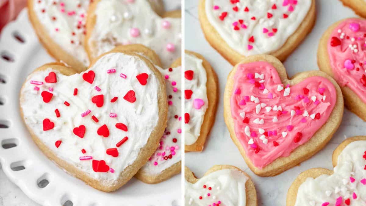 These Valentine’s Day Sugar Cookies are buttery cookies that make a delicious dessert, treat, or gift! This easy recipe takes minutes to make. The topping can be decorated with different sprinkles or treats. Yum!