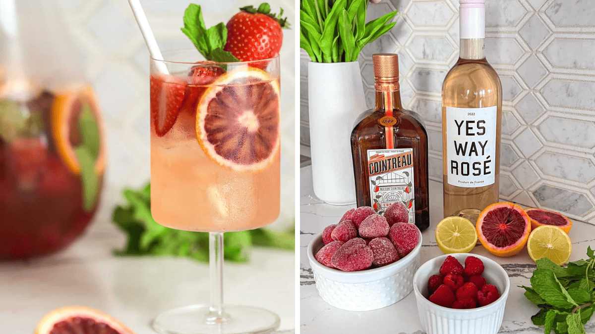 This Pink Rosé Sangria is a great drink to make for a fun evening at home. Cointreau and wine mixed with frozen and fresh fruit makes for a very refreshing drink.