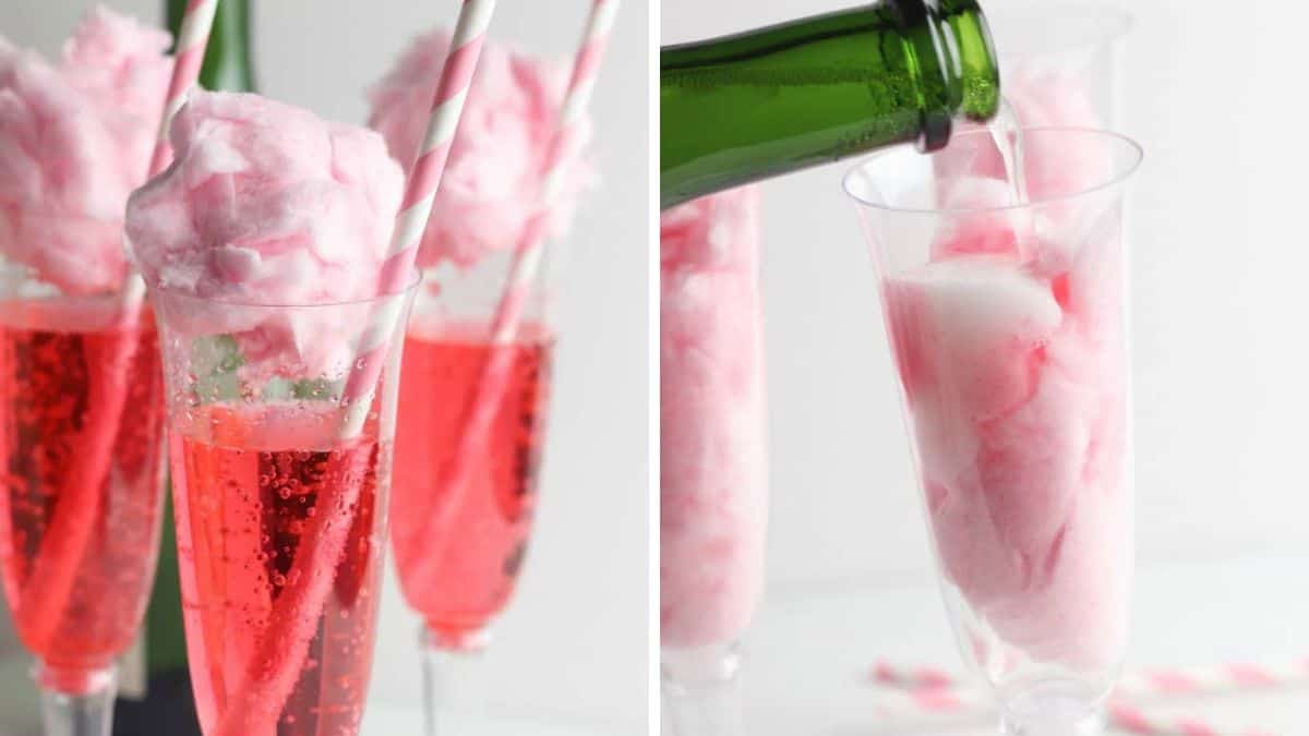 This Cotton Candy Champagne Cocktail is delicious. Sweet and fluffy cotton candy will magically dissolve as it hits the bubbly champagne! These cocktails are almost as fun to watch and make as they are to drink!