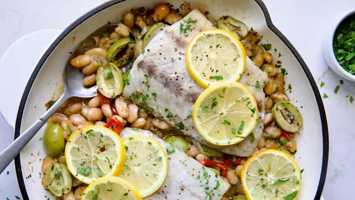 Get the recipe: Mediterranean Fish And White Bean Skillet